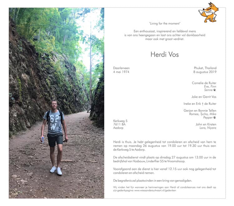 Tijdens een vakantie in Thailand is door een ongelukkig ongeval Herdi Vos overleden. Herdi, motorsport liefhebber pur sang en voormalig DMX Noord deelnemer, is de vader van Finn, DMX Noord coureur in de 85cc grote wielen. Onze gedachten gaan uit naar Cornelie, Eve, Finn en natuurlijk alle andere nabestaanden; Sterkte! Voorafgaand aan de start van de 85cc in Vledderveen zal er een minuut stilte worden gehouden uit respect voor Herdi en zijn familie. |
