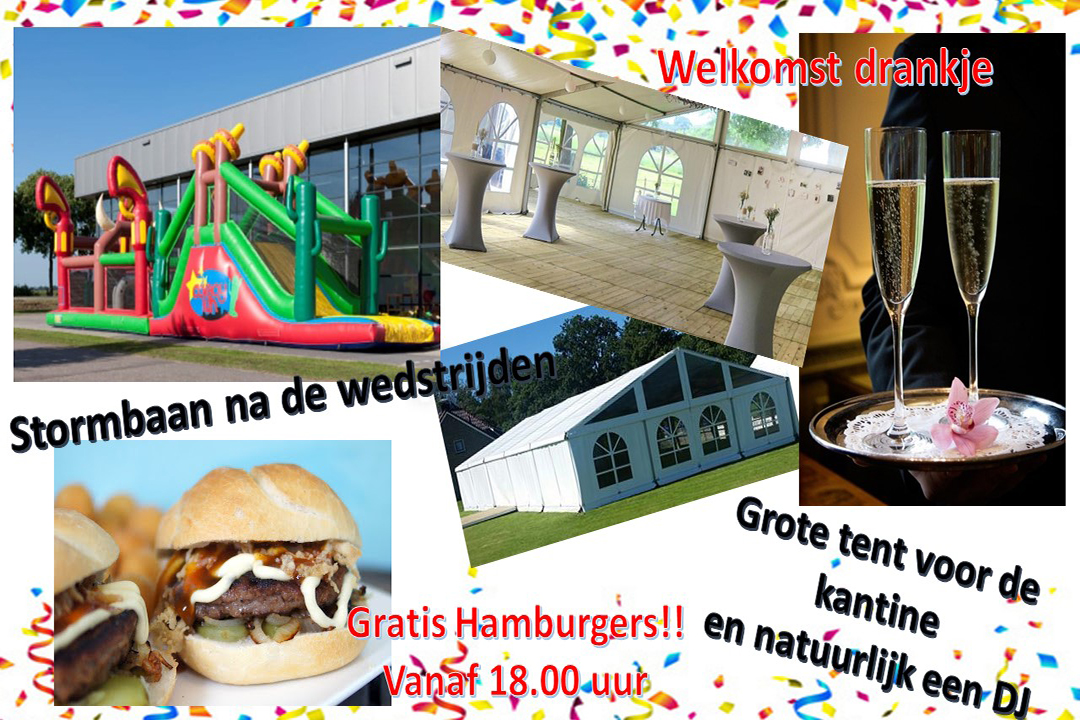 Dit jaar doen we het een keer anders. Niet een aparte feestavond voor de kampioenshuldiging maar we bouwen een feestje na afloop van de laatste wedstrijd op 15 september in Veendam. We zorgen ervoor dat jullie niet van de honger omkomen en ook zijn er genoeg drankjes te koop. We rekenen er op dat het gezellig wordt.Natuurlijk kan het nog zijn dat het weer roet in het eten gooit. Mochten we de reservedatum nodig hebben dan informeren we jullie tijdig hoe we het op gaan lossen. |
