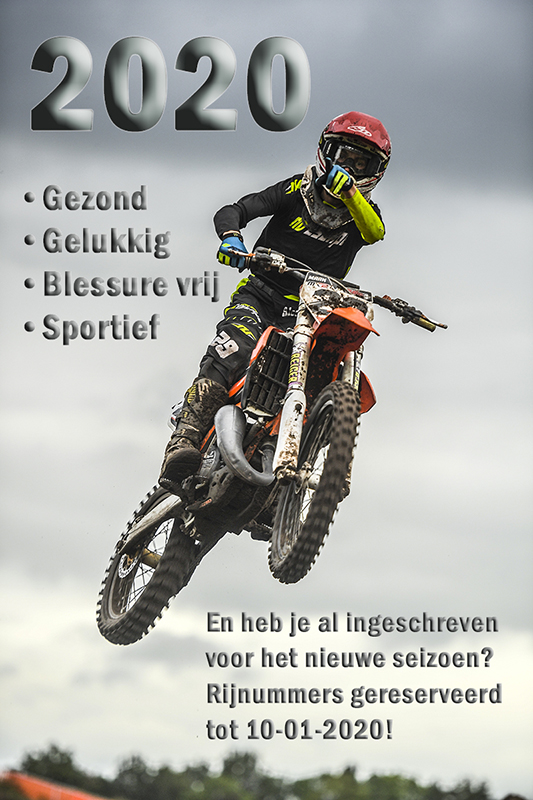 Het is nog niet helemaal zo ver maar binnenkort loopt de periode af waarin de rijnummers gereserveerd zijn. Vanaf 11 januari zijn de rijnummers vrij beschikbaar voor alle coureurs, dus wil je niet achter het net vissen, wacht dan niet te lang.Wanneer je nog gebruik wilt maken van de voorkeursregeling, zorg dan dat je inschrijving uiterlijk 10 januari 2020 middernacht binnen is. Compleet ingevuld en met een basis sport licentie 2020, want anders wordt de inschrijving afgewezen en kan er iemand anders met je nummer van door gaan! |