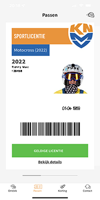 Het lijkt er op dat heel veel coureurs niet weten hoe een basis sportlicentie er uit ziet. Dat is natuurlijk raar, maar voor de duidelijkheid nog even een afbeelding van de basis sportlicentie. Screenshots van je ledenpas, aanvraag of profiel op de KNMV website meesturen heeft geen zin, je aanmelding wordt niet geaccepteerd. En ook het jaar moet kloppen, 2019, 2020 of 2021 werkt niet, er moet echt 2022 op staan. | ||||||||||||||||||||||||||||